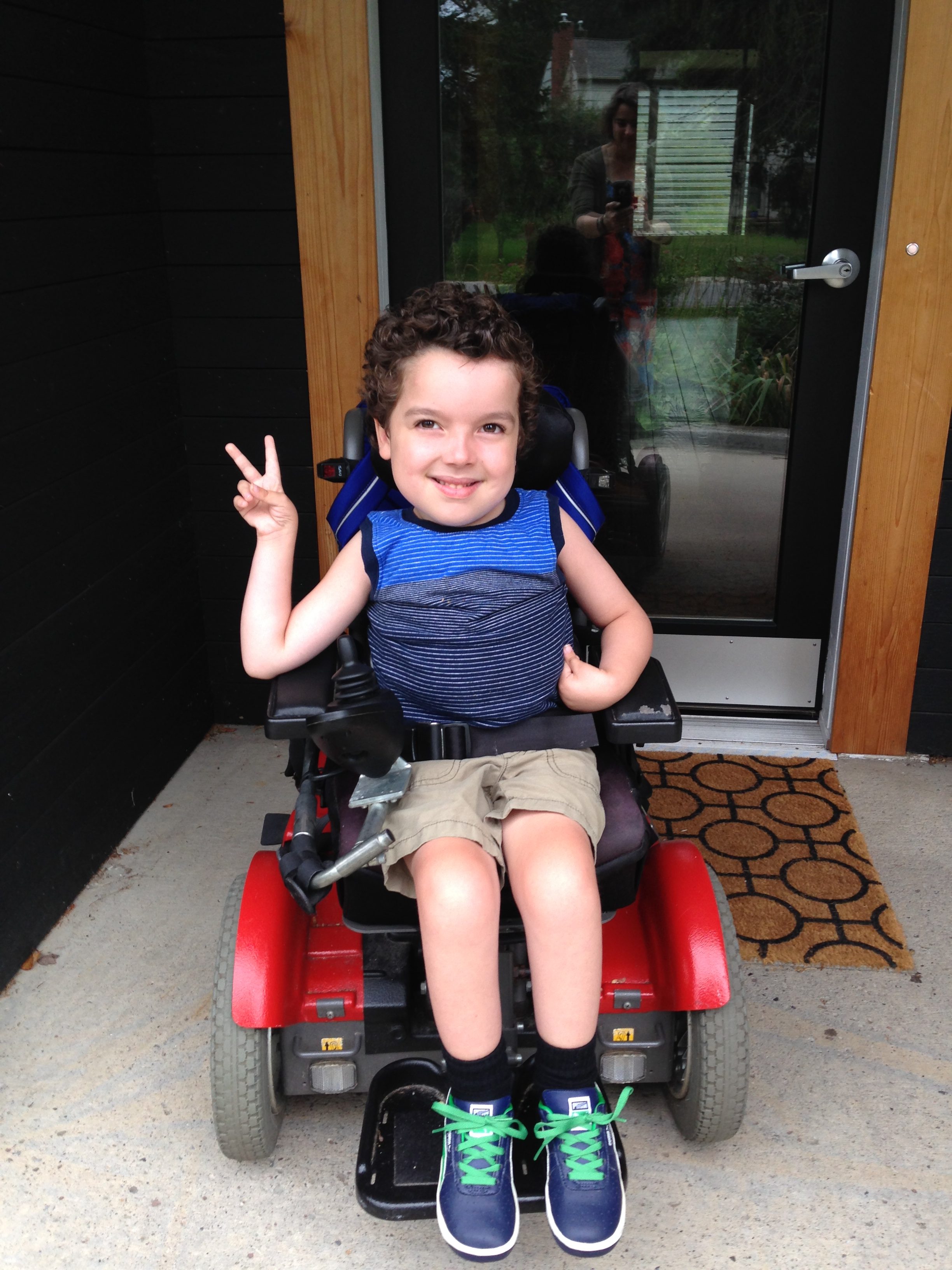 We are the Merulla-Bonn family: Sally, David, and Oscar. We live in Rochester, NY. We love to read, be outside, enjoy delicious food, see new places, spend time with people we love. Sally is a writer, educator, arts administrator who loves to bake bread and pizza. David is a musician, writer, and health care professional who loves to run and draw funky little characters, especially for Oscar. Oscar is a middle-schooler who loves Legos, drawing, music, mythology, Harry Potter, swimming, and talking with people both new and familiar! Oscar also happens to drive a power wheelchair. In 2009, at the age of 14 months, Oscar was diagnosed with SMA (spinal muscular atrophy), type II.