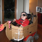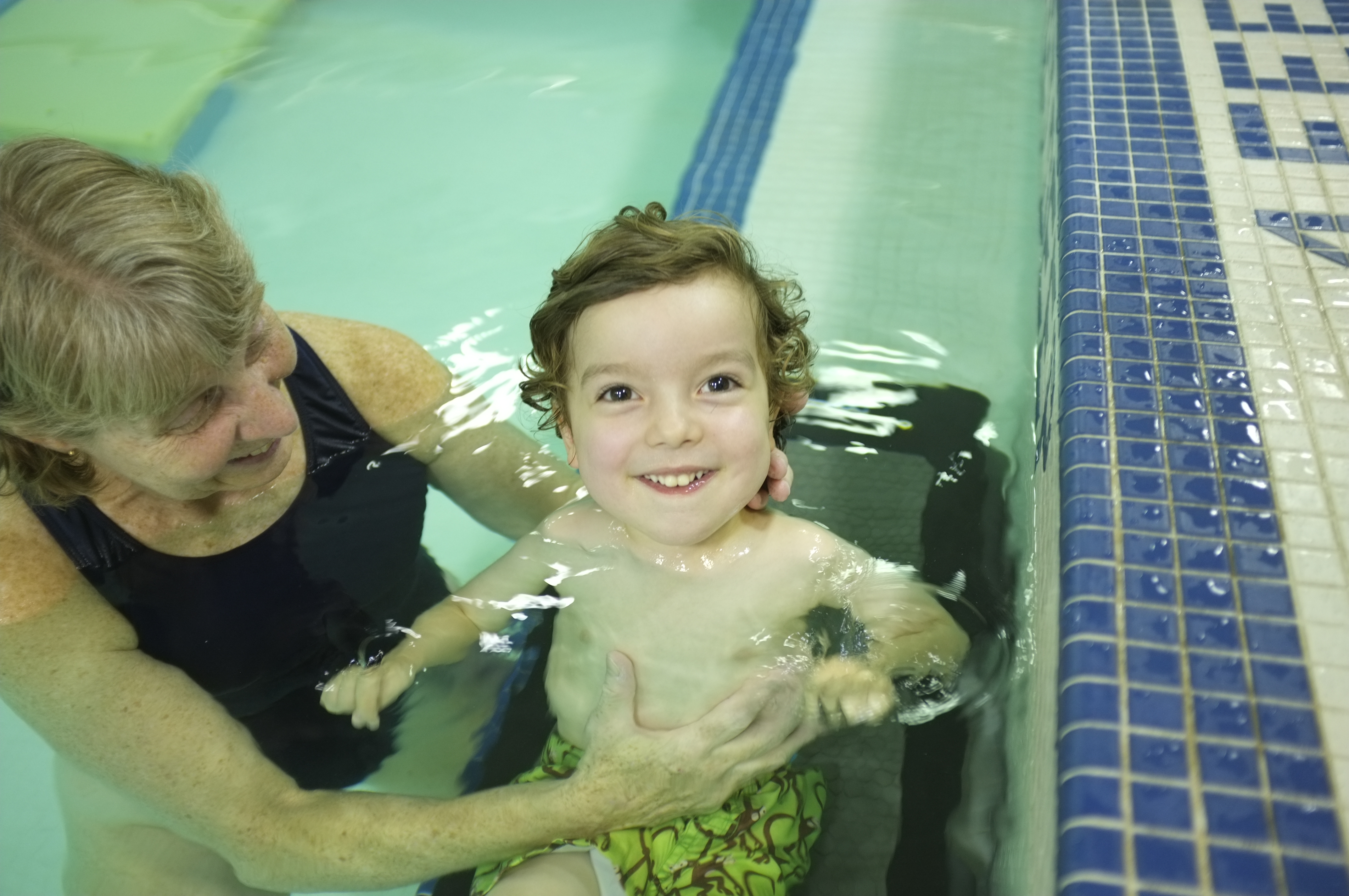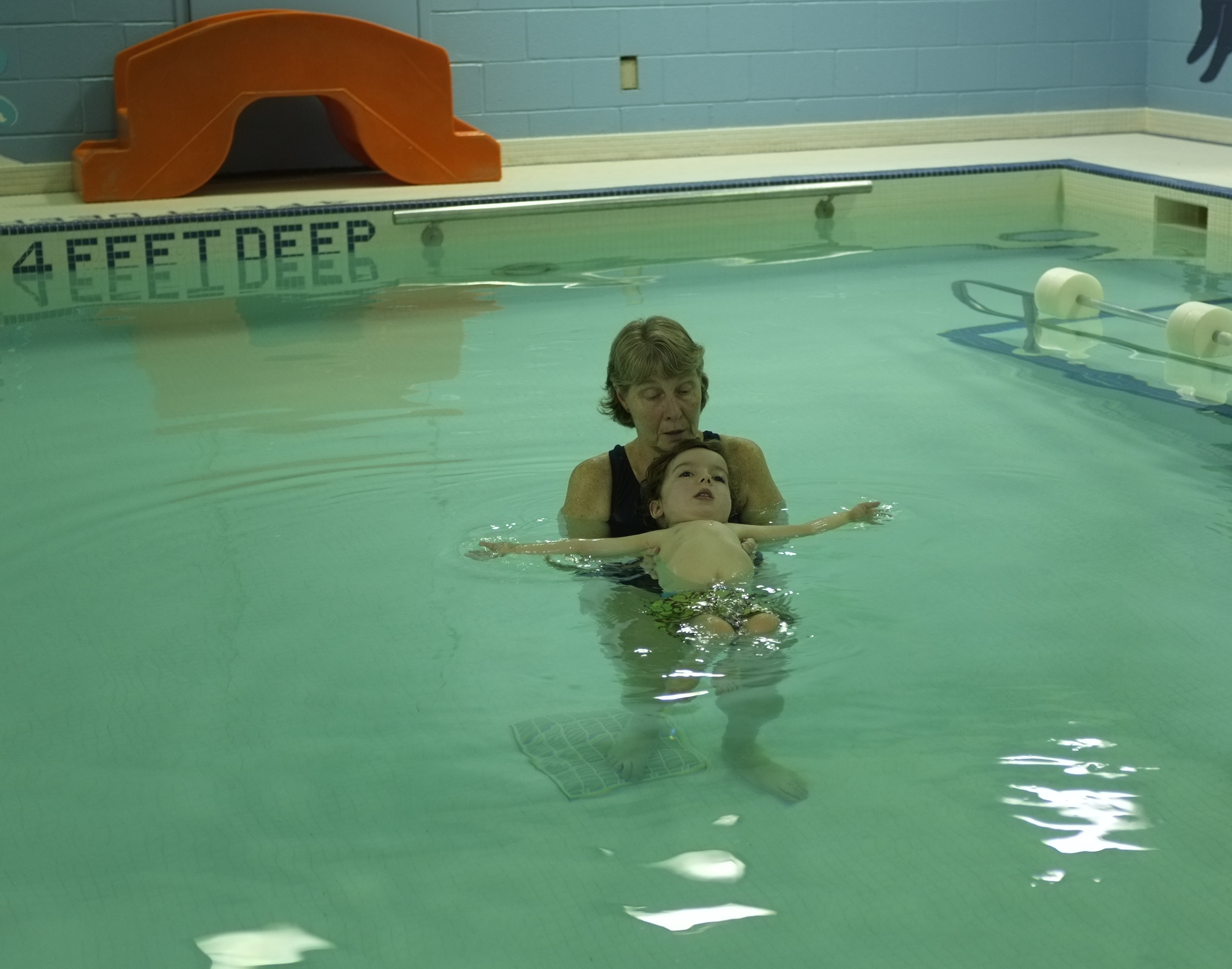 • Later in the summer Oscar started aqua therapy. He loves the pool! This seems good for him in every way: the buoyancy allows him a greater freedom of movement; the warmth of the water facilitates stretching; due to the pressure, breathing in the water is two and a half times harder than it is on land and we’re thrilled that Oscar is breathing normally and using a loud voice in the pool; the work of the pool is allowing him to build muscle; and he looks forward to it every week!