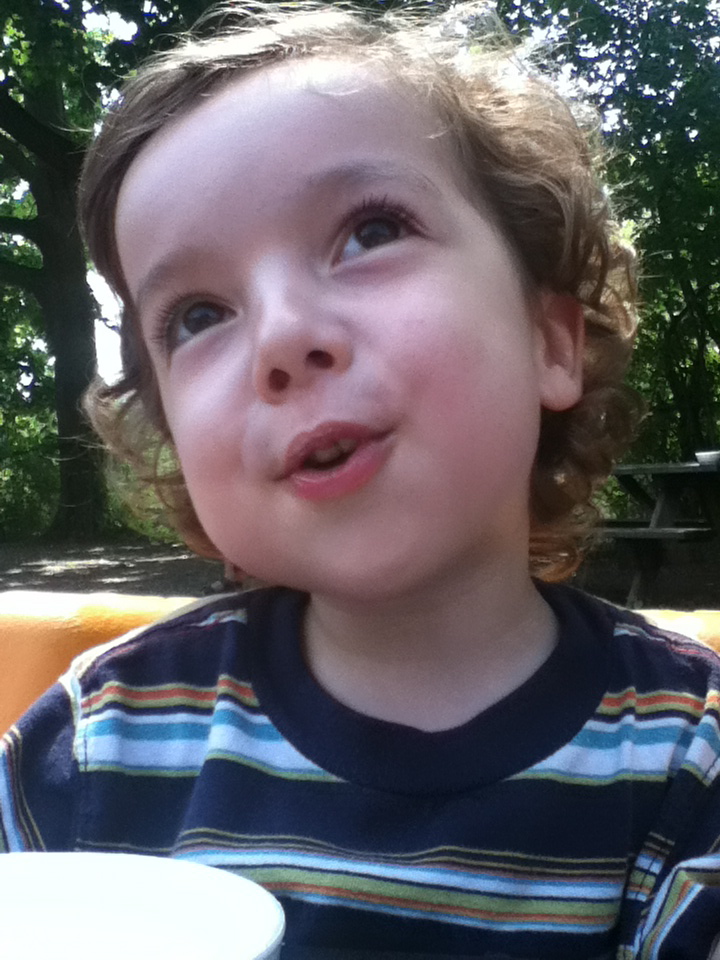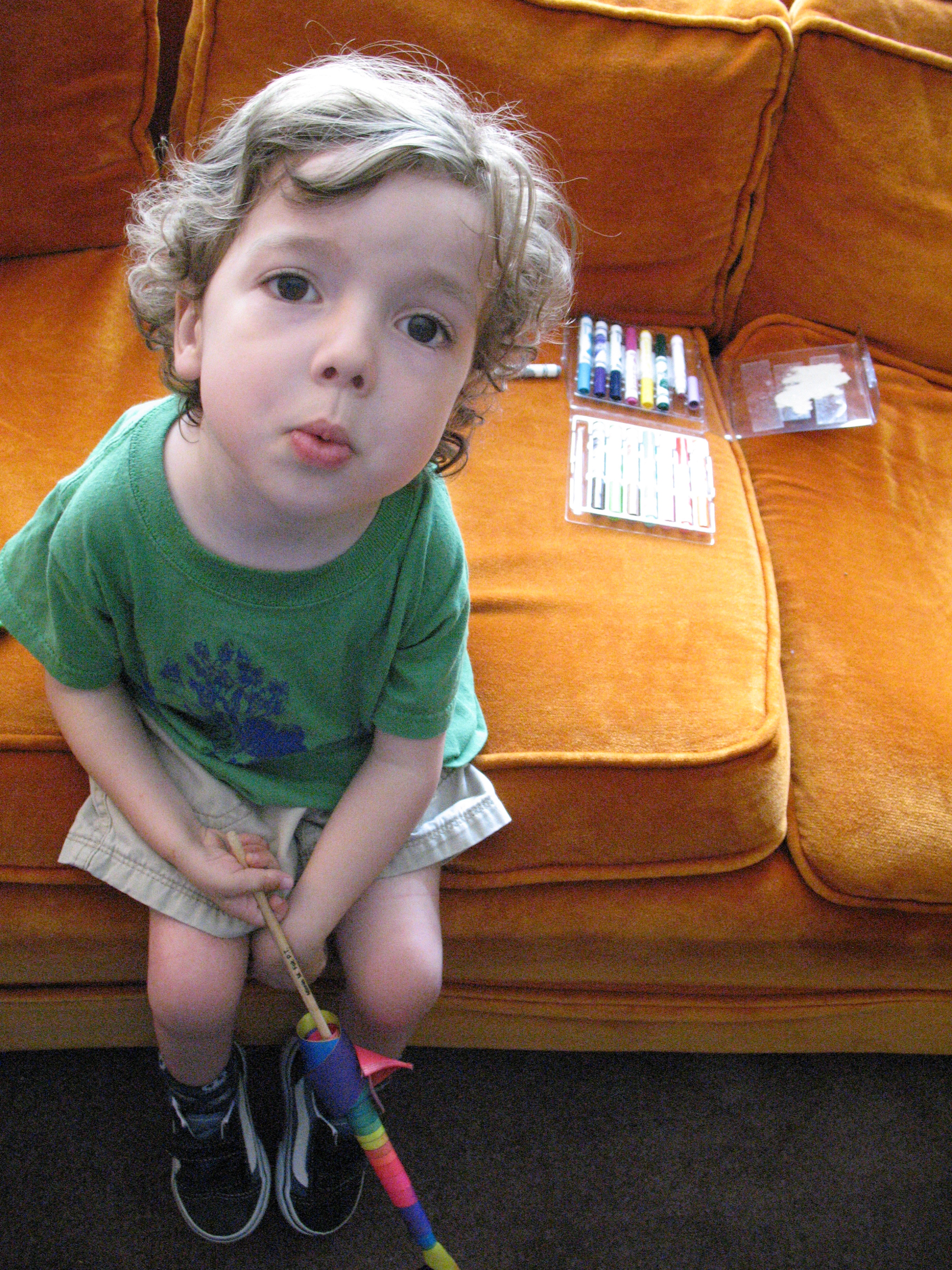 One summer morning in the car, after David gave a goofy answer, Oscar said, “Are you being sarcastic?” Since then he has accurately called us on our sarcasm regularly.