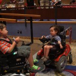 It's been too long since we've written! Sometimes we're just too busy living life to write about it... My first experience with the organization Families of SMA was days after Oscar’s diagnosis when I timidly visited their website for the first time. I saw a photograph of two children from behind—a young girl in a power wheelchair with supports holding her head in place, and a little boy walking beside her, holding her hand. This photograph, at that time, made me sick to my stomach. Would that be my little boy? How soon would he not be able to hold his own head up anymore? Also, on that first brief and terrifying visit to www.fsma.org, I read the words, “Life with SMA doesn’t have to be any different,” and I got angry. Really angry. How dare they tell me that? My whole life has just been turned upside down and is quite different from anything I ever expected. A few weeks later a large package was delivered to our door with an FSMA return address. By large I mean easily two-and-a-half feet high, wide, and deep. I was scared to open it at first. What scary things associated with this new diagnosis could be lurking in this box? But the contents were not scary at all: a bumbo chair, bubbles, nerf ball, squirt gun, jack-in-the-box, a dvd, and a handful of other toys. I was dumbfounded that strangers in an office in Chicago had sent this box of gifts to our family. The generosity itself present in this offering meant more to me than the items, and indeed turned out to be symbolic of the nature of the organization. Six months later, the three of us, along with my mom, boarded a plane to California to attend the annual FSMA national conference. We were like deer in the headlights arriving at the hotel where over a thousand others were also gathered for the same purpose. But there we met others who were living the same new normal as we were. We found a community that has become like an extended family. Each year now, we look forward to the FSMA conference with great anticipation—a chance to connect with other families affected by SMA, and to learn from the top SMA researchers from all over the world. Today, I can look at that same photograph that is still on the website and delight in the beauty, the independence, the love that is depicted (and incidentally that power chair the girl is driving is the same model that Oscar uses today). Also, I can find real truth in the words that first made me so angry. When we are able to openly embrace all that comes our way, indeed life doesn't exactly have to be so different with SMA. But what does all of this have to do with yoga, you might ask? My friend and colleague, Kristen Zory King, is doing a 30-day Bikram Yoga challenge to raise money for FSMA, in honor of Oscar. For those of you who don’t know about Bikram yoga, it is also known as “hot yoga” because it is done in a 105 degree room. The same 26 poses are performed twice during each 90-minute class. And Kristen is doing it! She’s 16 days into it already! Kristen is keeping a regular blog about her experience and she has an indiegogo page she is using to raise money. [caption id="attachment_1012" align="aligncenter" width="223" caption="Kristen, during last summer's Harry Potter Birthday party at Writers & Books! Always championing a good cause!"]