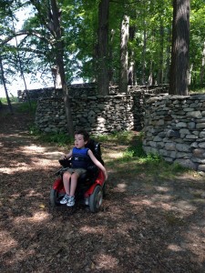 We had some traveling adventures this year as well. At the last minute we decided we needed to do something fun during spring break so we went overnight to Niagara Falls and stayed in a room overlooking the falls. In June we went to the SMA conference in Kansas City. As usual it was a delight to catch up with families we’ve met over the years, as well as meet new families. In August we made another last minute trip to Storm King Arts Center in the Hudson Valley. Oscar had really become enamored with the artist Andy Goldsworthy after watching a documentary on him so we thought it would be great to see one of his pieces in person, along with all the other massive and inspiring sculptures at Storm King. Indeed, it was a great hit! Also in August Oscar and David spent a weekend at Keuka Lake with friends and in September the three of us spent a long weekend at another peaceful spot along Keuka. In November we had another amazing weekend with aunt Linda and other favorite relatives in Baltimore, as well as our annual visit to the SMA specialist at Johns Hopkins. This was the first visit in which the doctor made no new recommendations at this time, which was a relief to us.