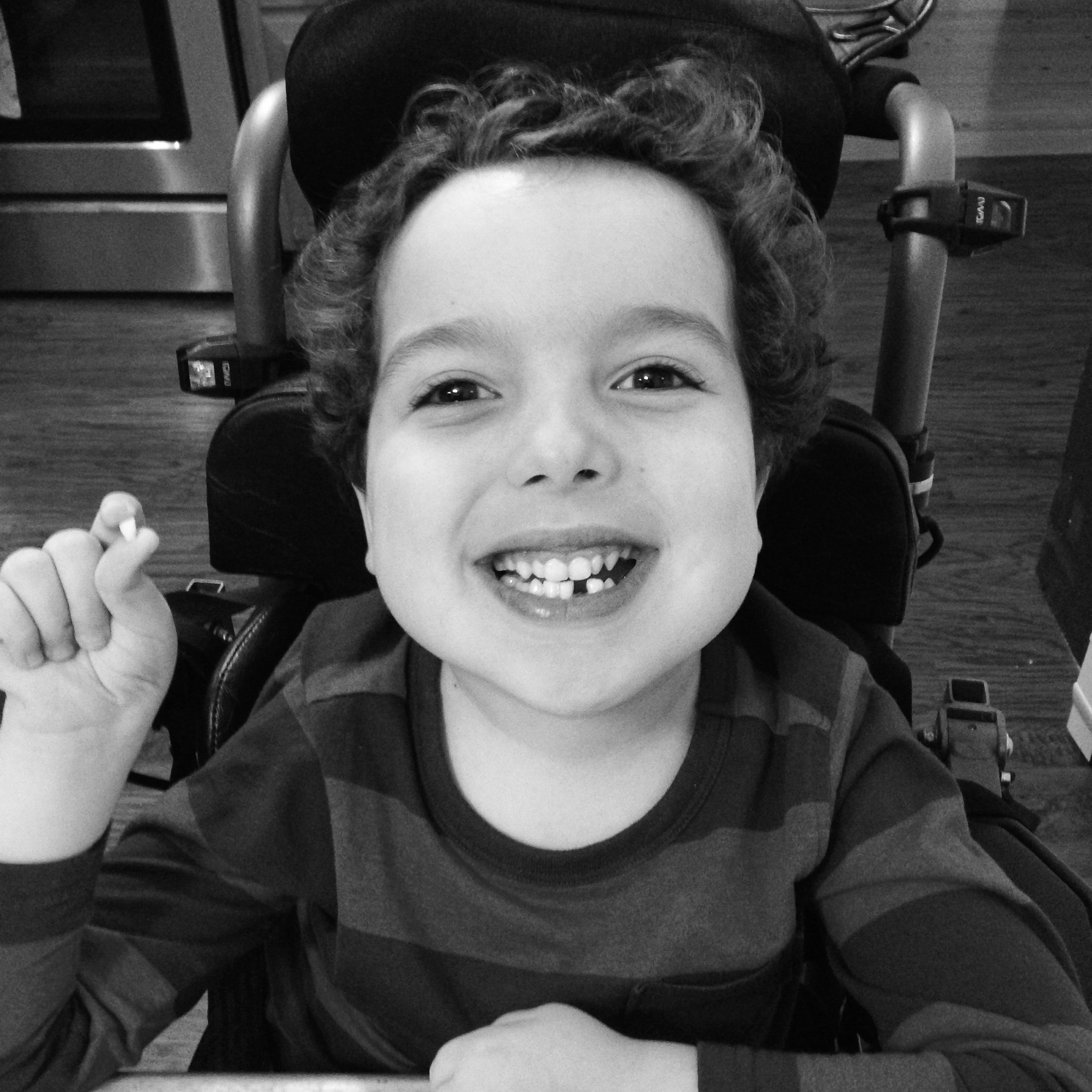This fall also brought many milestones to our family. At Oscar’s seven-year check-up in October we learned that he had grown three inches in a year and gained eight pounds in four months! With his sudden growth spurt we decided that he was finally ready to stay in his power chair while riding in the van, versus transferring to a car seat. This has been an exciting shift for Oscar and has also simplified things for us by reducing the number of lifts we have to do of this growing boy! Oscar also lost his first tooth this fall, and has a second wiggly one. He did not want to part with his first tooth so he wrote a very courteous letter to the tooth fairy asking if she would be willing to leave his tooth for him but still leave a treasure. And she complied! Oscar continues to participate in aqua therapy twice a week and he just loves being in the pool. This fall he worked his way up to putting his whole face in the water, and then eventually swimming underwater with no flotation device (usually he wears a neck ring floaty). He is so proud of his accomplishments and he continues to gain strength, flexibility, and bravery as he explores different ways of being in the water.