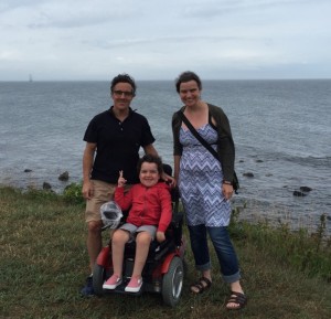 However, our week did not start out blissfully. Oscar woke up on the morning we were leaving with a sore throat and a runny/stuffy nose: a cold. I think we went through an entire box of tissues in the car on the way to Rhode Island. Oscar being sick is the single most stressful thing that happens in our lives, because we just never know how any given illness will manifest in his body or how serious (dangerous) it might get. Oscar and I both cried in the car on the way there. None of us breathed that easy light breath that comes with hitting the road toward vacation. My mind ran rampant with thoughts of where the nearest doctor might be, the nearest hospital, whether or not there are any doctors in Rhode Island that know anything about SMA. How much an out-of-network hospital visit might cost us. Whether or not any doctors there would be willing to listen to our pediatrician’s advice over the phone and not admit Oscar if his oxygen dipped low like it did back in June when he was sick.
