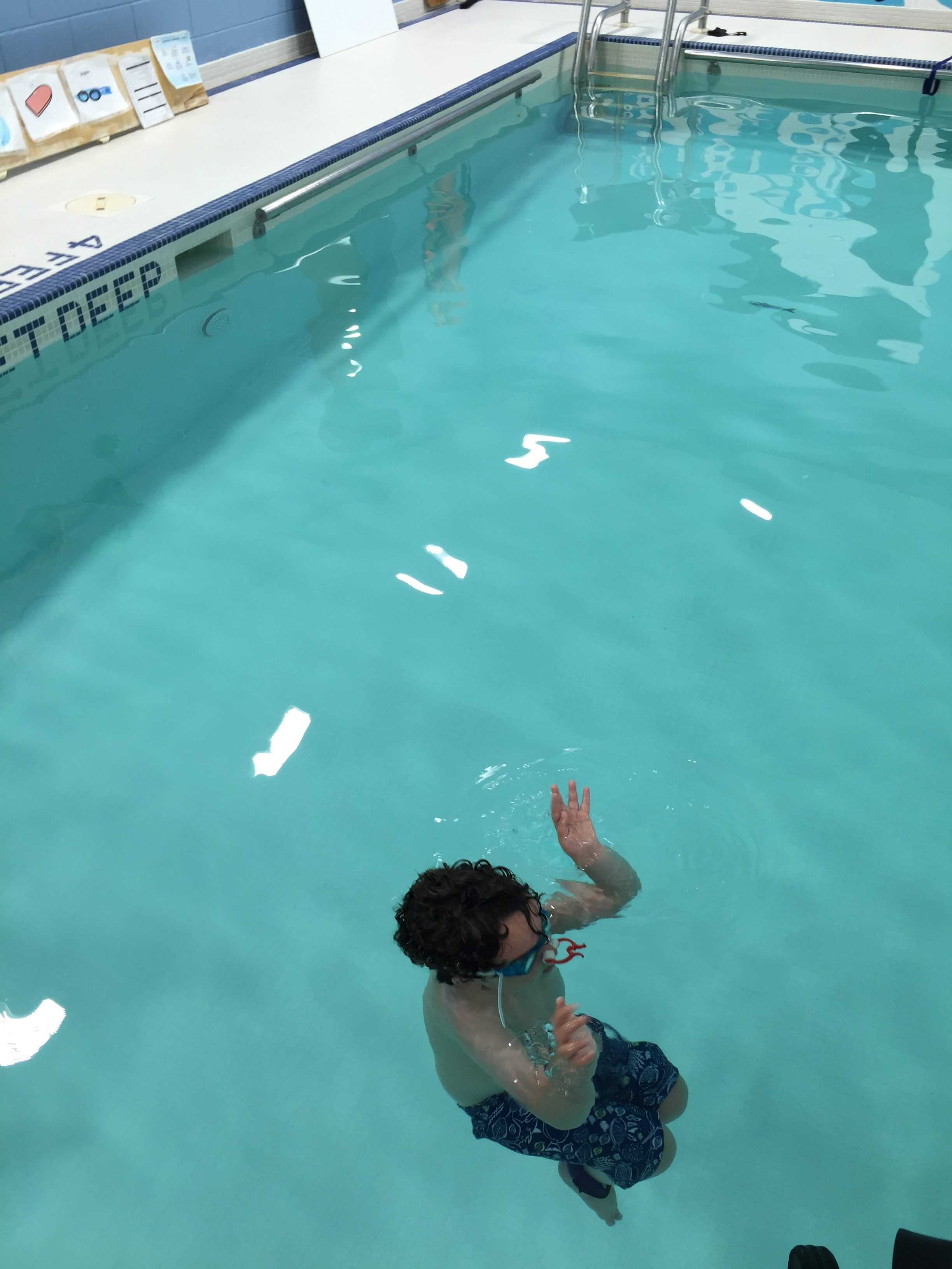 The second answer is that this was the perfect year to be Oscar’s first year at the ocean. Oscar has grown leaps and bounds in his comfort level, confidence, and bravery in the water this year. Oscar has been doing aqua therapy since just before he turned four. Twice a week he practices swimming laps, sitting balance, trunk extension, stretching, and a whole host of other activities—most of which he has made up himself. He can do things in the water he can’t do out of the water because he has a sense of freedom in the water. And within the last year he has begun swimming under water. When he started, he was scared of even getting a drop of water on his face and now he has worked his way up to a whole variety of underwater activities.