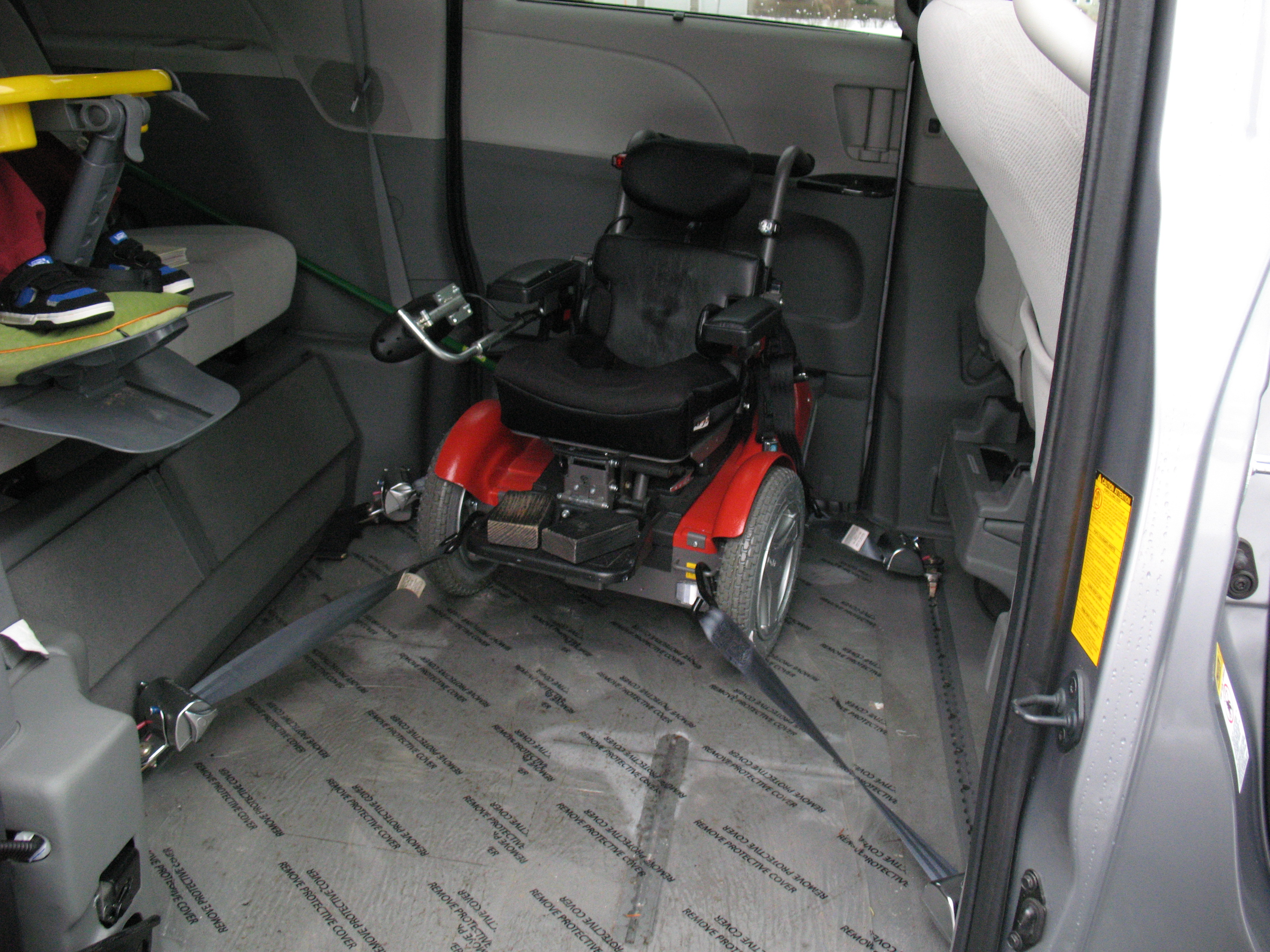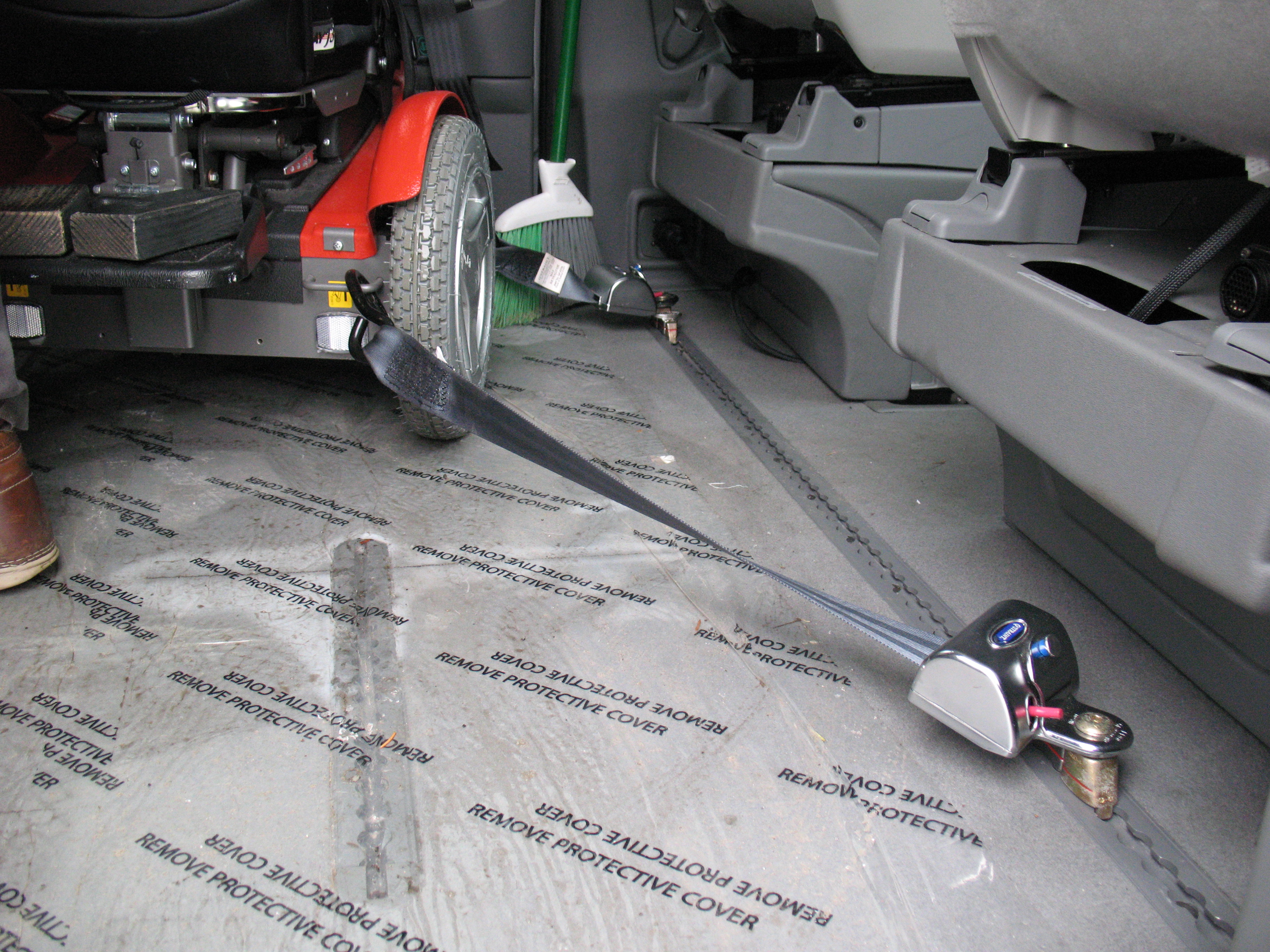 [caption id="attachment_833" align="aligncenter" width="450" caption="These easy quick-release tie-downs secure Oscar's chair in 4 places."]