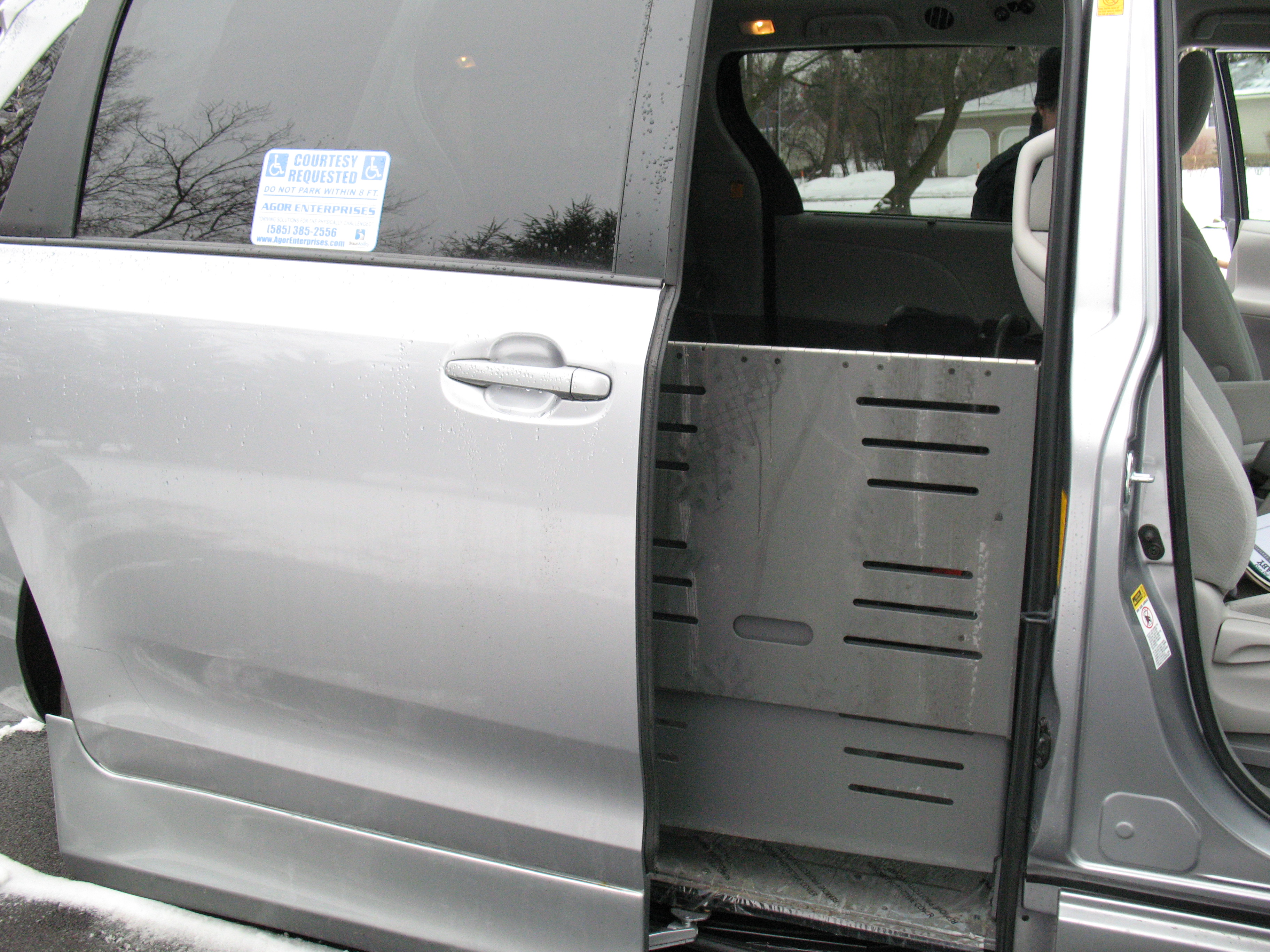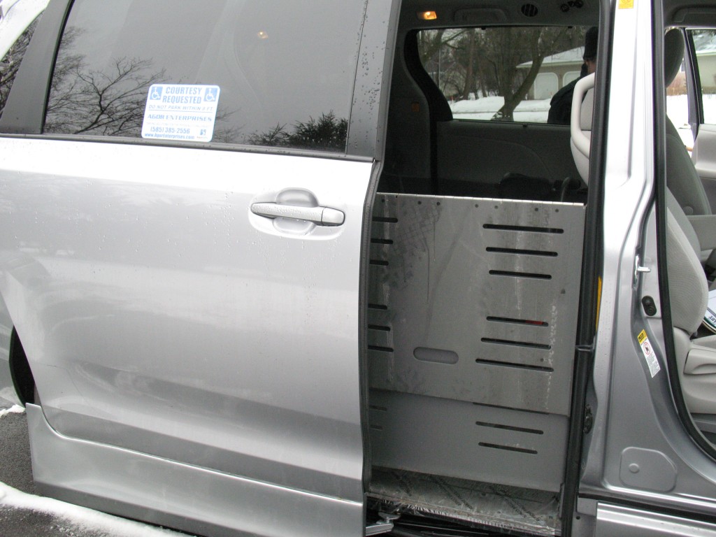 [caption id="attachment_829" align="aligncenter" width="450" caption="The ramp folded inside the van."]