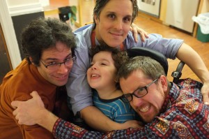 [caption id="attachment_1160" align="alignnone" width="300" caption="Fellas full of love on Thanksgiving: David Andrew, David Michael, Oscar, & Tom."]