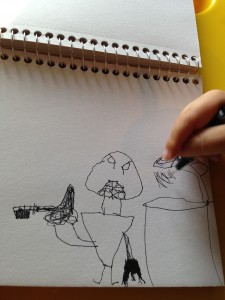 Oscar continues to draw. This is a storm trooper with a tooth brush.