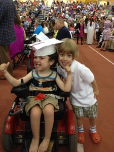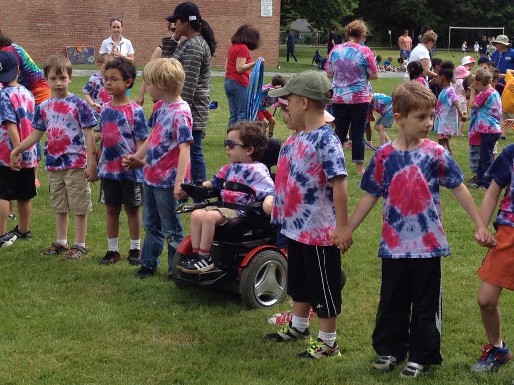 [caption id="attachment_1112" align="alignnone" width="450" caption="Oscar participated in his first field day at school at the end of his kindergarten year. His PT, 1:1 and all the staff—and students!—helped really make all the activities accessible to him."]
