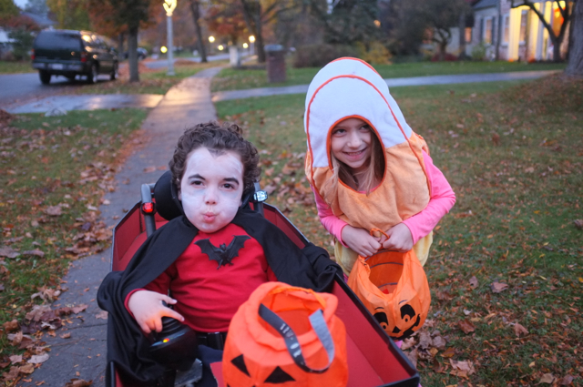 [caption id="attachment_1157" align="alignnone" width="300" caption="Dracula and Candy Corn trick-or-treat together."]