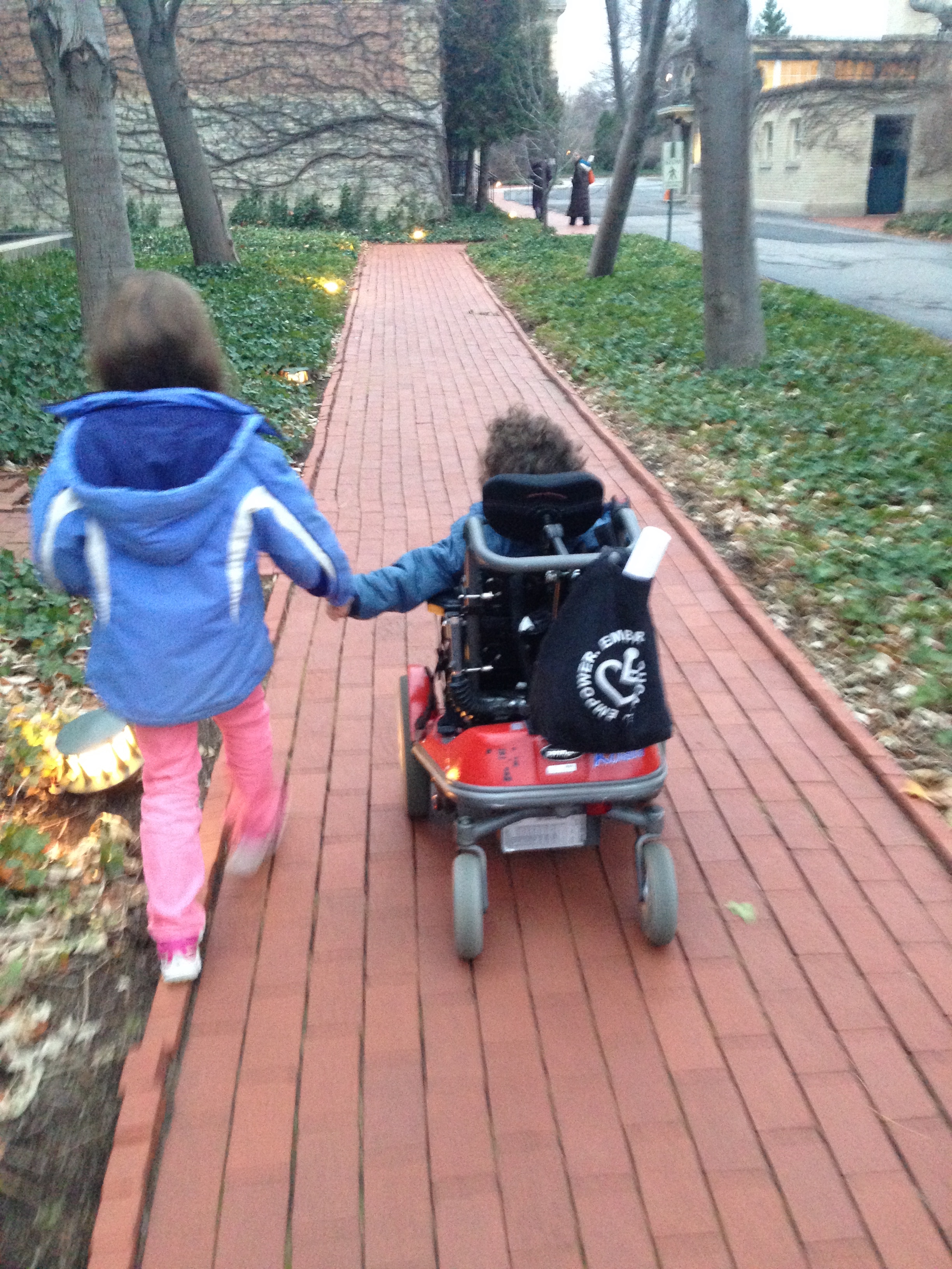 Oscar's kindergarten day was a half day, and he has made the transition to the full day very well. Though he is often tired in the evening, and goes to bed much earlier than he used to, he's delighting in that full day of school so much. It has definitely been a big transition for our whole family: Oscar has a whole lot less down time—even after school he has aqua therapy, physical therapy, music therapy or massage therapy a minimum of two days a week, but usually at least three. Since he goes to bed earlier now, our evenings as a family have been cut short, from what we were used to. And Ghi Ghee (my mom) is missing her two (or more) afternoons a week she used to spend watching Oscar while I was at work. I have been surprised that first grade has been a bigger transition for ME as mom than the transition into kindergarten was. Now that he is in school full day, he has a whole life outside of us, and away from me. I was used to him giving a blow-by-blow of his day in school. The day is too packed for him to share it all now. As much as we miss hearing everything, we are so proud of him that he is becoming independent and learning to navigate through the world without us.