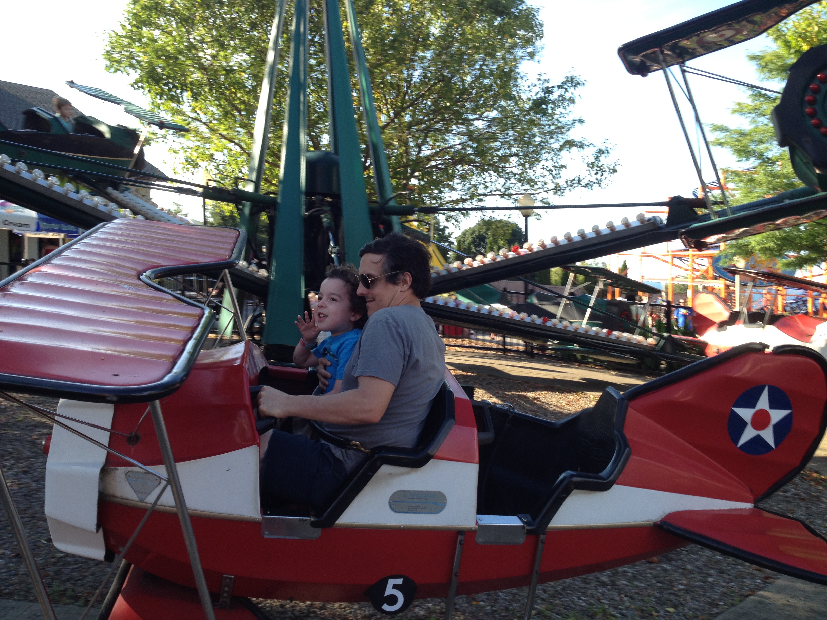 We took Oscar to Sea Breeze, our local amusement park, for the first time this summer, and he had a blast! They were very accommodating to Oscar's needs. He really enjoyed this airplane ride with his dad, and also the Lazy River in the water park, which we went on five times!